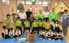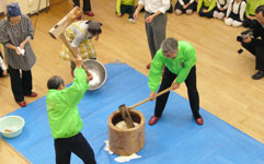 保育園を訪問して子供たちと餅つきのアクティビティ