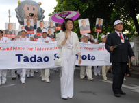 日本ライオンズのパレード (下左)国際理事候補者L.杉本忠夫 (下中)樋口次期副地区ガバナー候補者(当時)と (下右)我々の333複合地区
