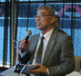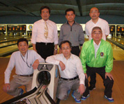 毎年本番で涙を呑んで来た親善ボウリング大会だったが、今回は新ルールにも助けられ(?)なんと団体戦準優勝の栄誉を頂いた。会長始め6名の精鋭達! (右)大会実行委員長 L.村山(新潟北L.C)