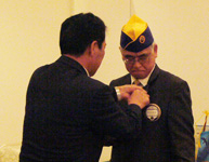 現三役より新三役へ役員バッチ、新役員より現三役へはパストバッチが贈られた。