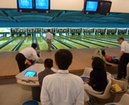 (左)L.中田(伊)が懇親会のウィサーブ (中)ボウリング大会で優勝したL.和田 (右)準優勝はL.渡部