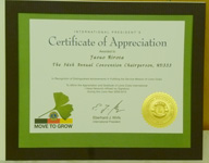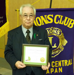 例会では、先日開催の333複合地区第56回年次大会で廣田年次大会委員長が受賞した「国際会長賞」が披露された。