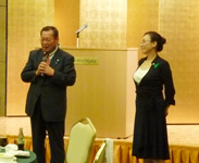 例会の冒頭、5月11日ご逝去された故L.櫻井晃(会場のホテル日航新潟・常務取締役)に全員で黙祷を捧げた。