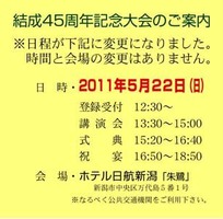 結成45周年記念大会延期開催日は、5月22日(日)に決定。