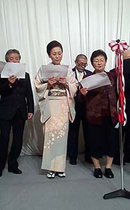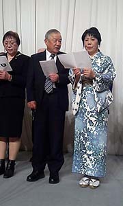 新発田菖城L.C (姉妹クラブ) の新年家族会に参加 (左) 新発田菖城ライオンズ山崎会長の挨拶 (中) 女性会員が参加しての合唱 (右) アトラクションは、柳本幸子さんのソプラノ独唱 来賓として新潟セントラルLC・新発田LC・阿賀野LC・聖籠LC・加治川さくらレオクラブや家族会員の方々が70名程参加され、盛大な新年会でした。クラブからは、三役・馬場第一副会長・渡部第二副会長・L.徳田・L.羽賀の計7名が参加