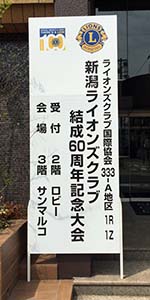 地区最古参の新潟L.Cが結成60周年を迎え記念大会を開催した。クラブより廣田元ガバナー、渡部会長、関幹事、L.白井、L.羽賀、L.村木、L.上田、三浦事務局員の8名が参加した。