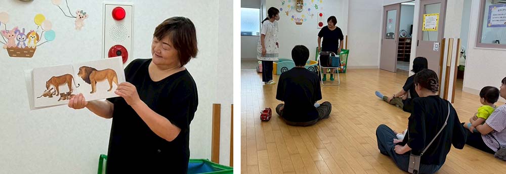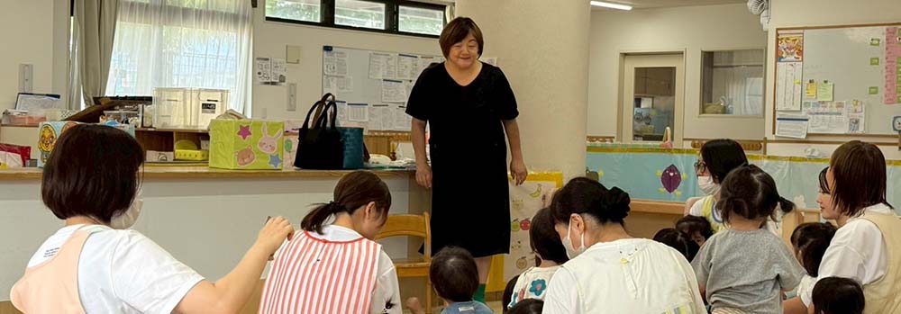 L.丸山聡子が、8月の絵本読み聞かせアクティビティをみつばち第二こども園・地域子育て支援センターみつばちで行ないました。