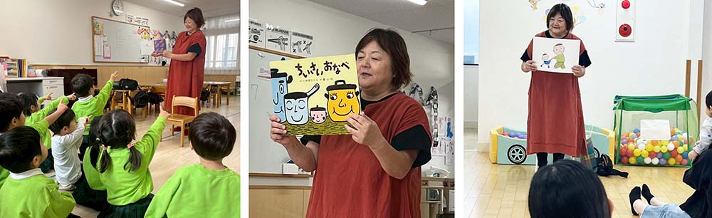 L.丸山聡子が、11月の絵本読み聞かせアクティビティをみつばち第二こども園・地域子育て支援センターみつばちで行ないました。今回は、荒井会長が写真撮影を行ないました。