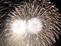 奉納花火は二日間にわたって行なわれるが、当日最も感激したのは片貝中学同窓生による還暦祝いの大仕掛け大スターマイン。観る者の涙を誘うほどの感動を覚えた。