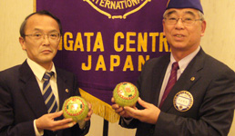(左) こちらではなかなか目にしない「土佐文旦」を例会出席者で早速頂きました (右) 先日息子さんが結婚したL.水野(睦)のお話