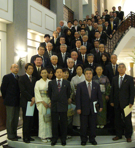 新年懇親会の前に参加者全員で記念撮影(グランシャリオ)