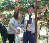 今回は、L.渡部貞子経営のデイサービス施設「リハブサロン・ドゥー」の皆さんを招き、「熊谷農園」(江南区茅野山・L.熊谷経営)を会場に、メンバーと大型の新高梨(にいたかなし)を収穫した。