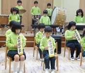 餅つき終了後、園児たちから楽器演奏のプレゼントがあり、その後一緒に昼食をいただいた。