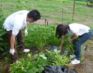 レオクラブ借用の畑(江南区茅野)で「枝豆」の収穫を手伝う。