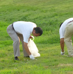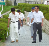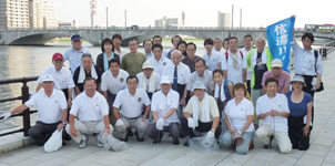 猛暑の中、やすらぎ堤の清掃アクティビティ