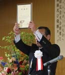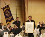 スポンサークラブである新潟L.C綱島会長へ感謝状、複合地区年次大会実行委員長を務めた廣田元ガバナーと歴代会長4名に表彰状が贈呈された。