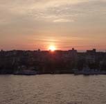 アトラクションは、君英夫クワルテットによるジャズの演奏が雰囲気を盛り上げる。宴もたけなわの頃、ロビーではこんな夕日が見られた。