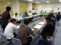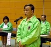 <左>緊張して開会を待つ選手たち <中>開会式で、田村大会会長の挨拶 <右>L.田中(一)から激励の言葉