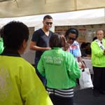 率先して呼び込みをする羽賀視力サポート委員長。子供たちにはキャンディーをプレゼント。