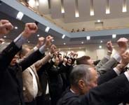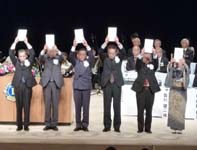 (左) ガバナーズ大賞の贈呈、1Rは新潟内野L.Cが受賞 (中) 今年度結成された新クラブと新クラブ支部が紹介された (右) 大会のハイライト、地区ガバナーエレクト L.田邊仁(長岡L.C)、第1副地区ガバナーエレクト L.牛木護(新潟八千代L.C・写真)、第2副地区ガバナーエレクト L.渡邉信也(亀田L.C)の入場