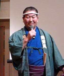 例会で「新潟相撲甚句会」の相撲太鼓を聞く