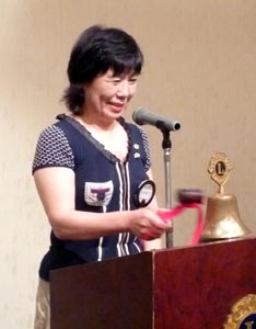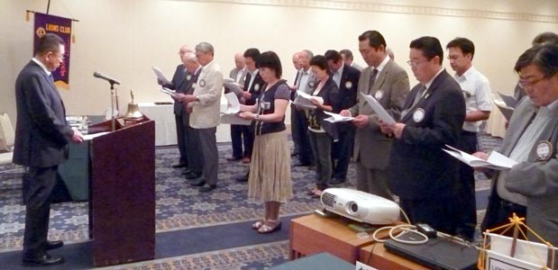 第999回例会では、次期役員の就任式が行われ、ゴングが水野(睦)会長に引き継がれた。