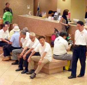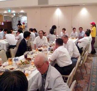 例会中より雨天となり、一旦は青空も覗いたが始めようとすると降り出す始末、懇親会場が開くまでロビーで待機となった。