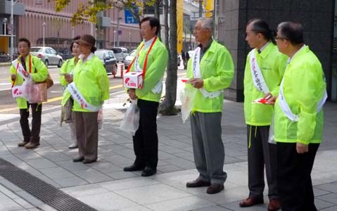 従来の柾谷小路付近は平日人通りが少なかったため、今回から万代シティ周辺での募金活動に変更した。万代シティ階段で記念撮影のあと4箇所に分かれたが、水野会長たちはメディアシップ前で募金活動を行なった。 水野会長、馬場第一副会長、渡部第二副会長、L.木村