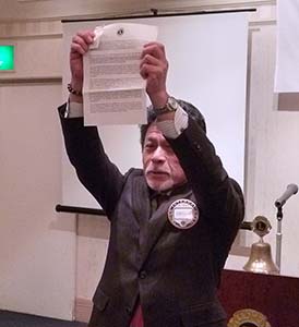 今回の例会では、くじ引きでたくさんの会員からスピーチをいただきました。堅苦しい話ではなく日常の話を聞くのも楽しいものでした。 左より、L.和田、L.丸山、L.小山、その後L.松田、L.水野(睦)の5名のライオンが快くスピーチしていただきました。