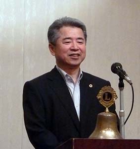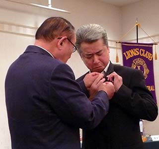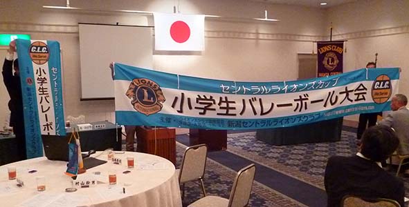 (上) L.堀内のSPで、L.渡邉俊雄の入会式が行われた。共にアクティビティに尽力しましょう。 (下) 間もなく開催される「小学生バレーボール大会」の横断幕が完成しお披露目された。