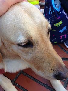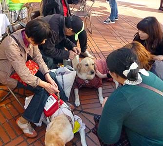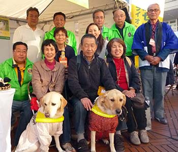 お馴染みの上林洋子様と盲導犬「フィズちゃん」、ご友人と盲導犬「グフィくん」も一日参加していただき、普段は触ることのできない盲導犬を撫でさせていただいた。感謝致します。