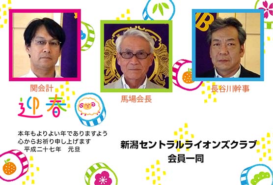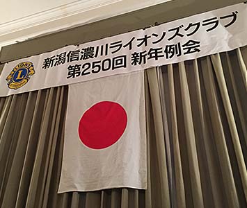 今年の新潟信濃川L.C新年例会には、馬場会長、長谷川幹事、渡部第一副会長、L.羽賀、L.斎藤、L.白井の6名が参加した。 (中) 新潟信濃川L.C佐藤会長のご挨拶 (右) 馬場会長のビジター代表挨拶
