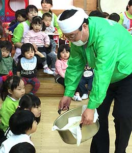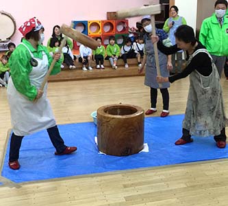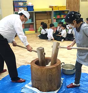 保育園の子供たちに餅つきのプレゼント(二園で実施)