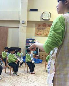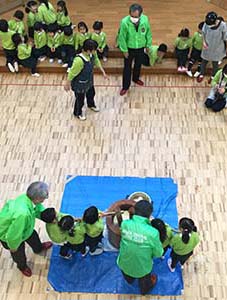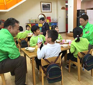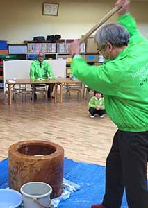 二回目は1/20に、みつばち第二保育園(東区新石山)で餅つき。 馬場会長、L.村山、L.阿部、L.水野(義)、L.白井、L.斎藤夫妻、L.茨木、L.伊藤<9名参加>