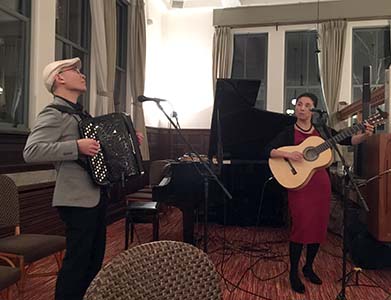 開演前のアトラクションでは、アコーディオンとギター・ボーカルディオ「ボサコルデオン」の演奏と歌を聴くことができた。 途中L.坂上のオークションで楽しみ、最後は大坂・長谷川両幹事のローアでお開きとなった。