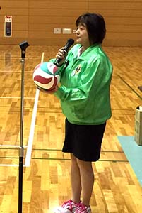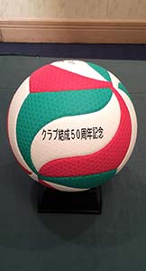 26日開催の第15回小学生バレーボール大会記念品のボールに、今回は特別に「クラブ結成50周年記念」の文字が入れられ会員に披露された。
